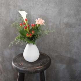 空間に溶け込みすぎないように、鮮やかなお色でアレンジしました。